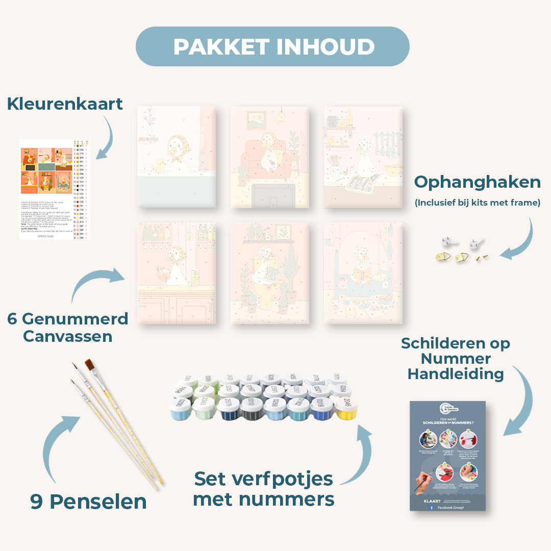 • Zonder frame: Dit is een standaard Mini Schilder op nummer canvas dat niet direct kan worden opgehangen.