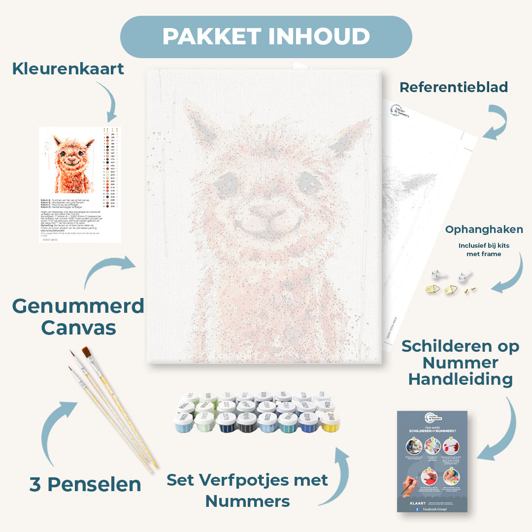 Ons Schilderen-op-Nummer pakket bevat alles wat je nodig hebt om direct aan de slag te gaan. Ontspan, geniet van het schilderproces en focus je volledig op je kunstwerk – wij zorgen voor de rest: