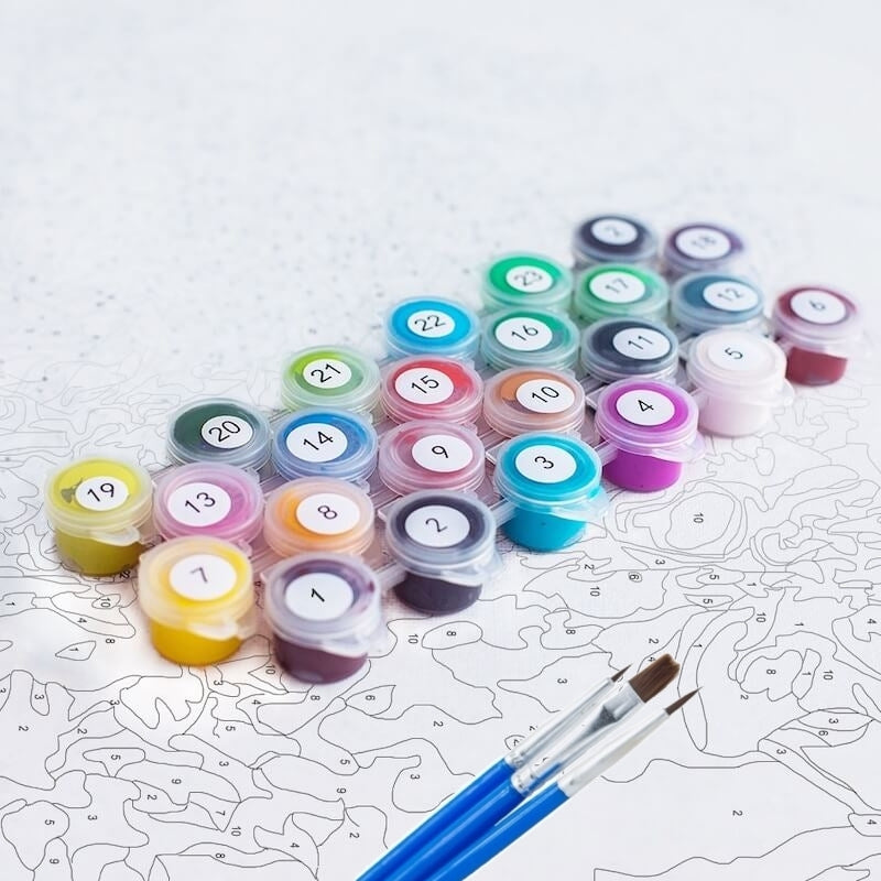 • Acrylverf set om het ontwerp volledig in te kleuren