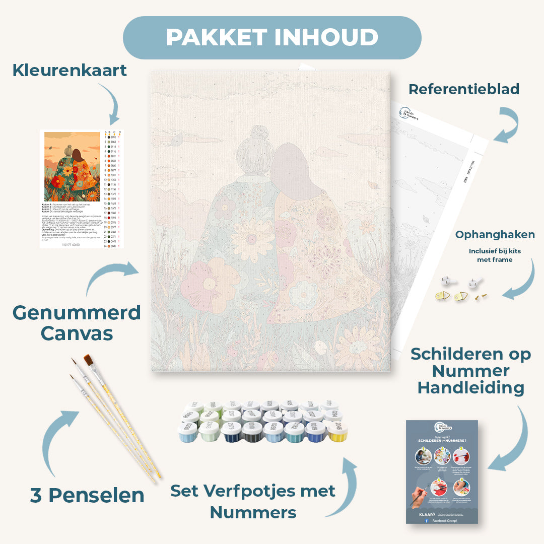 Ons Schilderen-op-Nummer pakket bevat alles wat je nodig hebt om direct aan de slag te gaan. Ontspan, geniet van het schilderproces en focus je volledig op je kunstwerk – wij zorgen voor de rest: